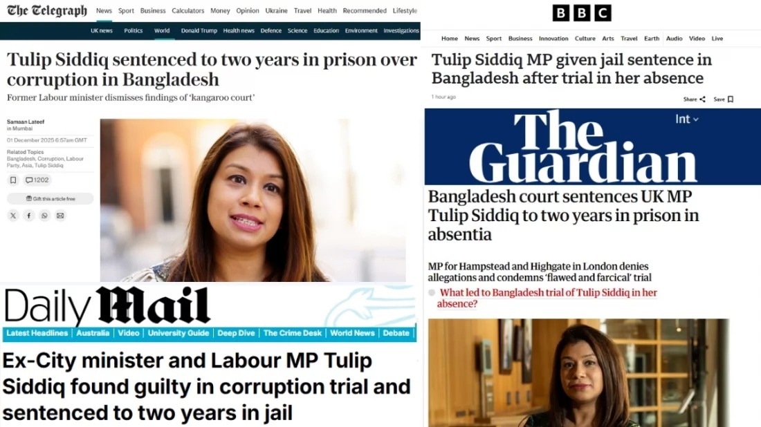 ব্রিটিশ গণমাধ্যমে টিউলিপের কারাদণ্ডের খবর