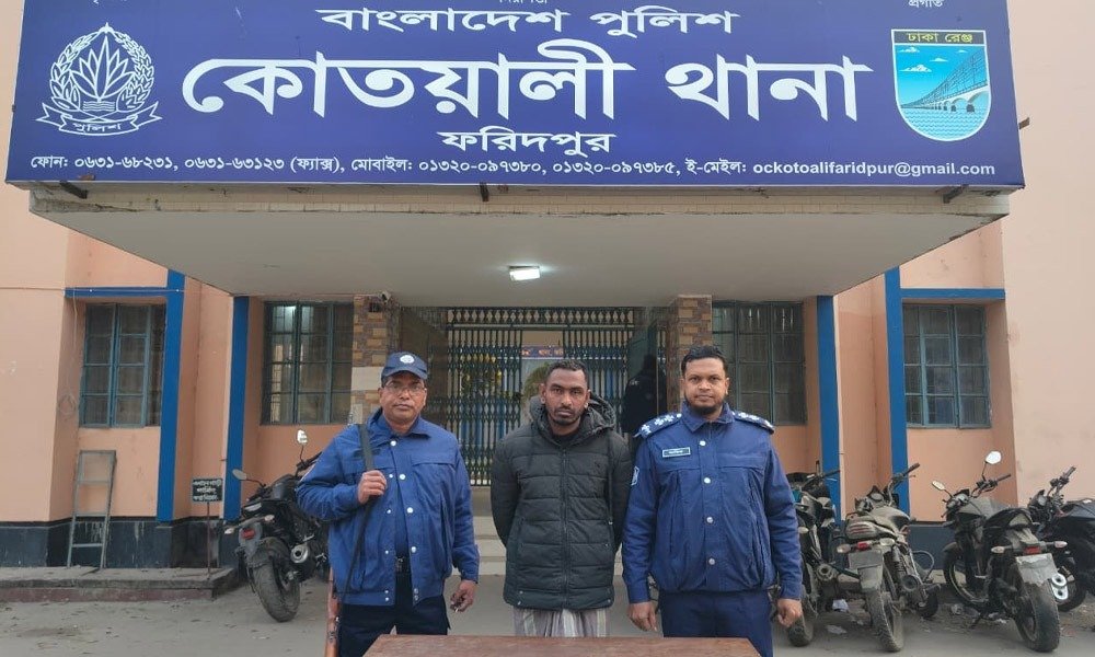 ফরিদপুরে একটি বিদেশি পিস্তল ও ৪ রাউন্ড গুলিসহ মো. জহির মোল্লা ওরফে জহির (৩৬) নামে এক যুবককে আটক করা হয়েছে।