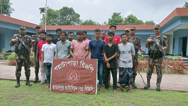 বর্ডার গার্ড বাংলাদেশ (বিজিবি) সদস্যরা কুড়িগ্রামের রৌমারী উপজেলার শৌলমারী সীমান্তে অবৈধ অনুপ্রবেশের দায়ে বাংলাদেশী ১২ যুবককে আটক করেছে। বুধবার (২