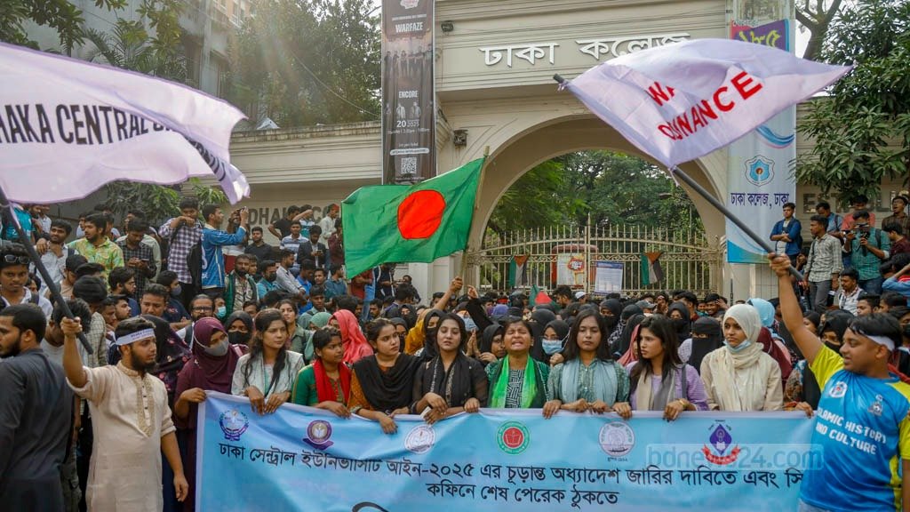 সাত কলেজের শিক্ষার্থীরা প্রস্তাবিত ঢাকা সেন্ট্রাল ইউনিভার্সিটির অধ্যাদেশ জারি করে বিশ্ববিদ্যালয়ের আনুষ্ঠানিক কার্যক্রম শুরুর দাবিতে বুধবার রাজধানীর তিনটি গুরুত্বপূর্ণ স্থানে