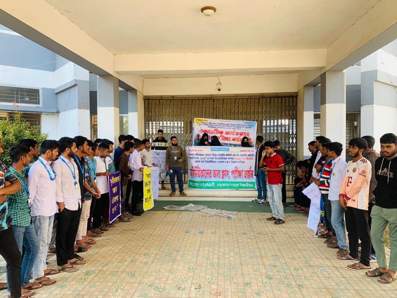 ময়মনসিংহের নেত্রকোণায় ইনস্টিটিউট অব লাইভস্টক সায়েন্স অ্যান্ড টেকনোলজি (আইএলএসটি)-এর শিক্ষার্থীরা বিভিন্ন দাবিতে ক্লাস ও পরীক্ষা বর্জন করে কমপ্লিট শাটডাউন কর্মসূচি