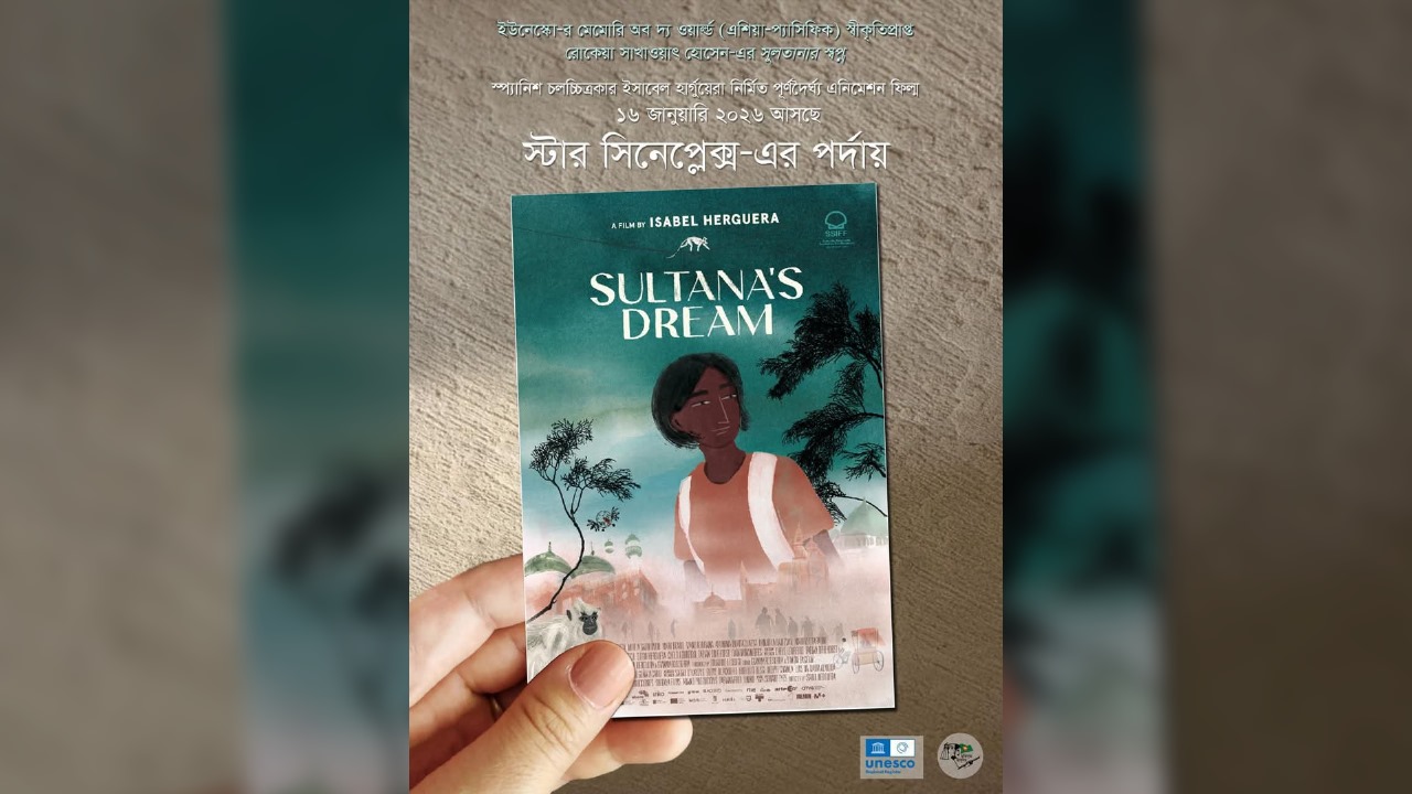 নারী জাগরণের অগ্রদূত রোকেয়া সাখাওয়াত হোসেনের ‘সুলতানা’স ড্রিম’ অবলম্বনে স্প্যানিশ সিনেমা ‘সুলতানা’স ড্রিম’ শুক্রবার মুক্তি পাচ্ছে স্টার সিনেপ্লেক্সে । এক