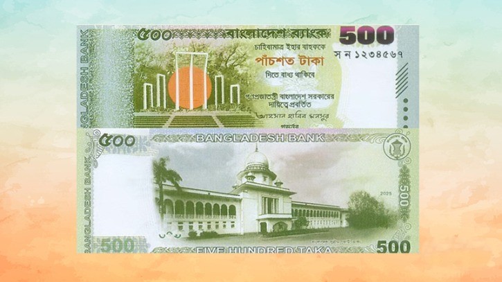 দেশে প্রথমবারের মতো গভর্নর ড. আহসান এইচ মনসুরের সই করা নতুন ডিজাইন ও সিরিজের ৫০০ টাকা মূল্যমানের ব্যাংক নোট প্রচলন