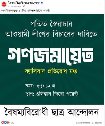 আ’লীগের পাল্টা কর্মসূচী ঘোষণা বৈষম্য বিরোধীদের