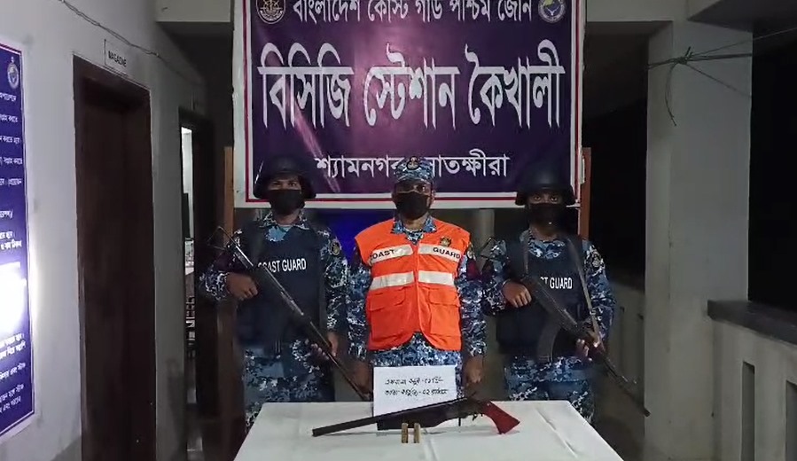 সুন্দরবনের মাউন্দে নদীর পাশবর্তী এলাকায় বাংলাদেশ কোস্ট গার্ডের বিশেষ অভিযানে একটি একনলা বন্দুক ও দুই রাউন্ড তাজা কার্তুজ উদ্ধার করা