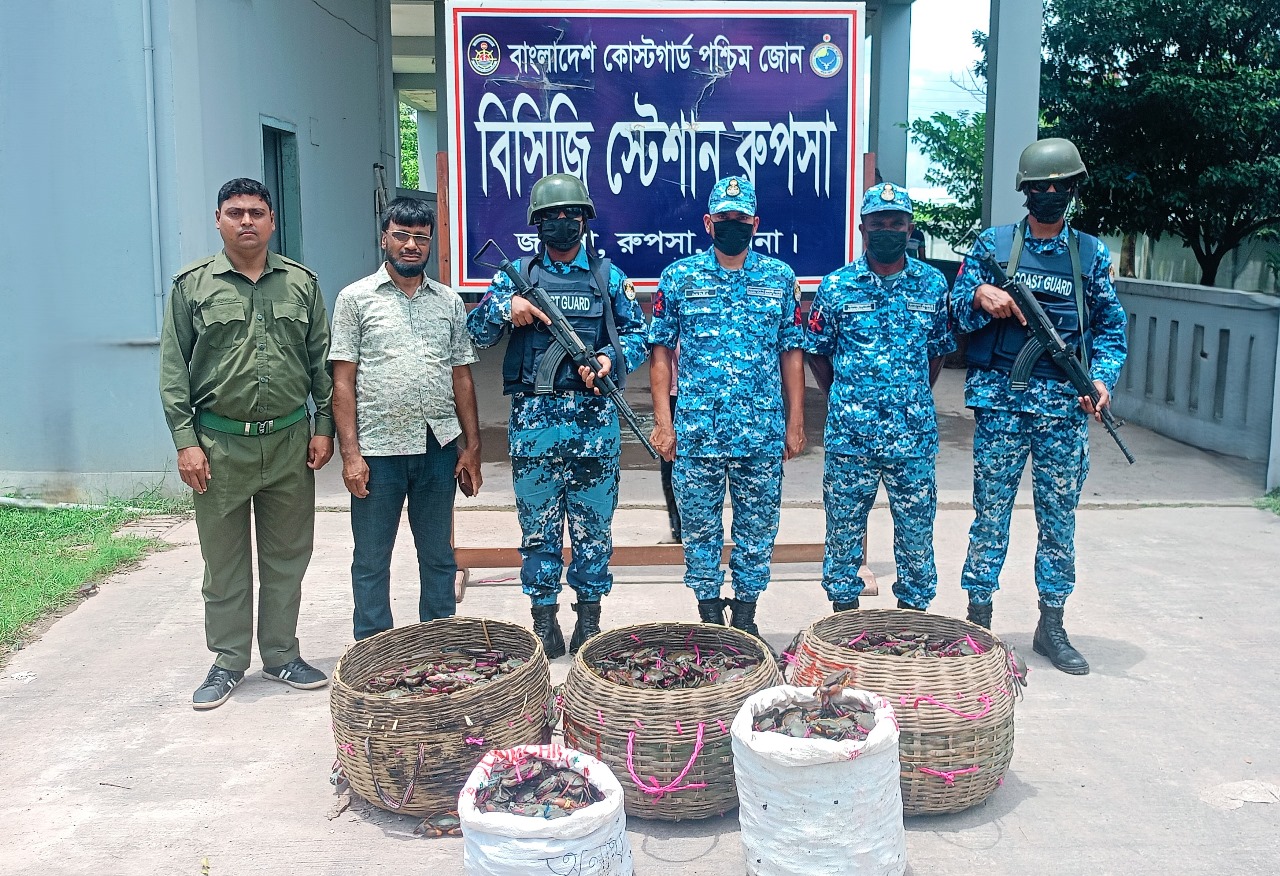 গোপন সংবাদের ভিত্তিতে খুলনার রূপসায় অভিযান পরিচালনা করে ২ লাখ ৫০ হাজার টাকা মূল্যের ২৫০ কেজি অবৈধ কাঁকড়া জব্দ করেছে