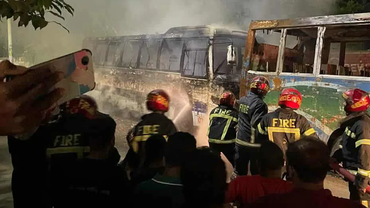 ঢাকা ও ফরিদপুরে বাসে অগ্নিসংযোগ