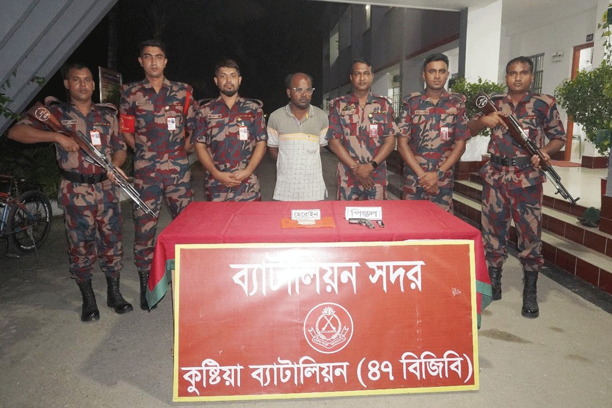 কুষ্টিয়ার দৌলতপুর উপজেলার ফিলিপনগর ইউনিয়নের আবেদের ঘাট এলাকা থেকে অস্ত্র ও মাদকসহ শীর্ষ সন্ত্রাসী জামিল মালিথা (৪০)কে আটক করেছে বর্ডার