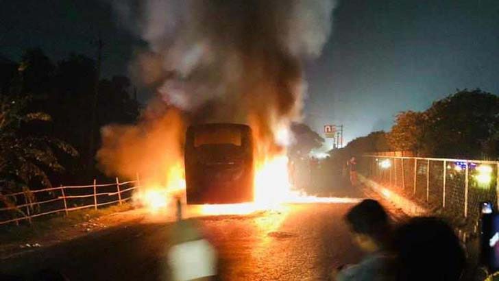 আশুলিয়ায় বাসে আগুন