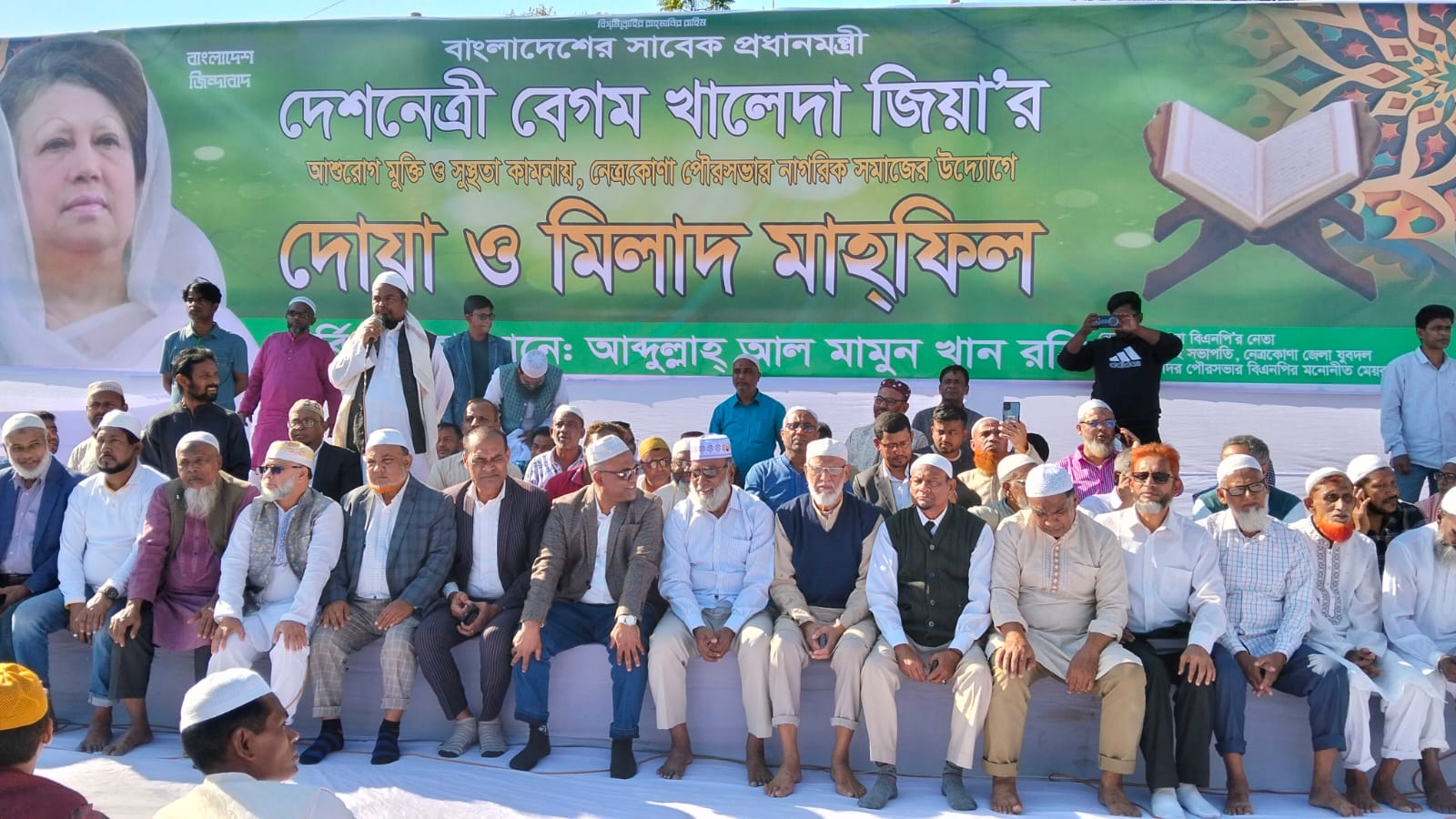 বিএনপি চেয়ারপার্সন ও সাবেক প্রধানমন্ত্রী বেগম খালেদা জিয়ার দ্রুত সুস্থতা ও রোগমুক্তি কামনায় নেত্রকোণায় দোয়া ও মিলাদ মাহফিল অনুষ্ঠিত হয়েছে।