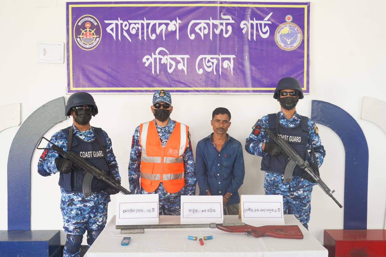 সুন্দরবনে কোস্ট গার্ডের অভিযানে অস্ত্র ও গোলাবারুদসহ আটক এক
