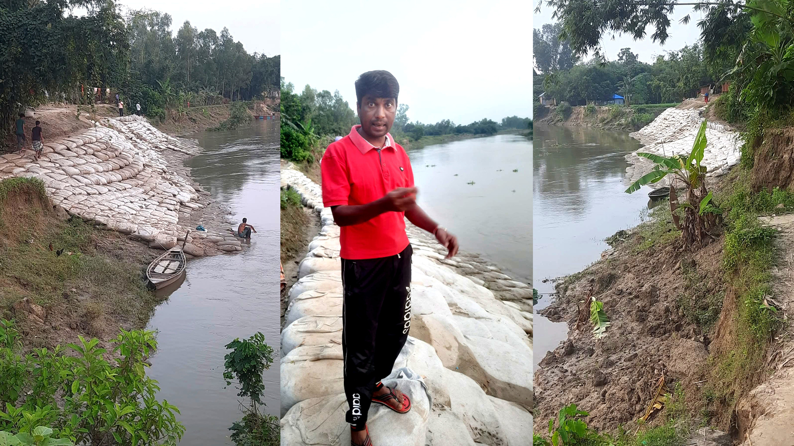 গাইবান্ধার পলাশবাড়ী উপজেলার কিশোরগাড়ী ইউনিয়নের সুৃলতানপুর বালুপাড়ায় করতোয়া নদীর ভাঙনরোধে পানি উন্নয়ন বোর্ডের জিও ব্যাগ ডাম্পিং কাজে বাঁধা প্রদান সহ