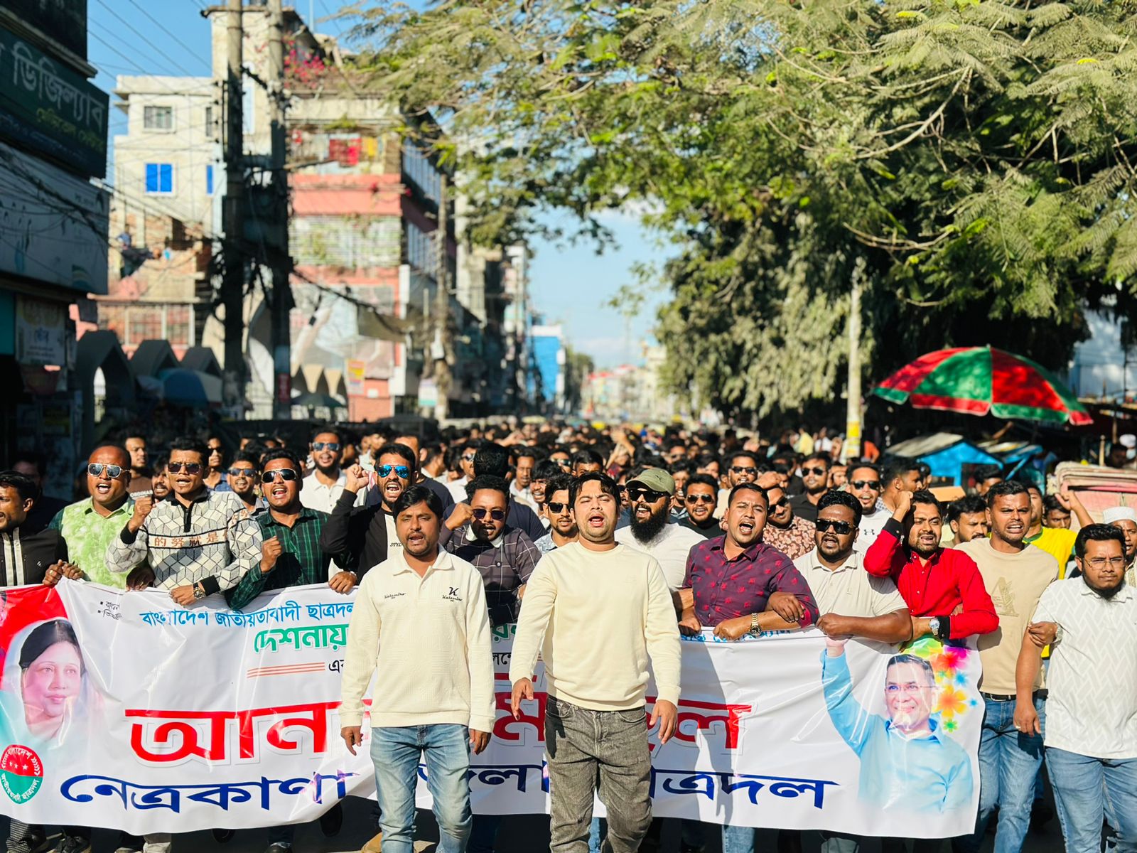 তারেক রহমানকে স্বাগত জানাতে নেত্রকোণা ছাত্রদলের মিছিল