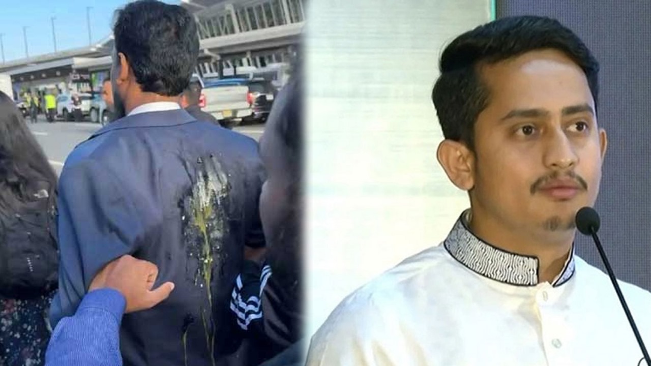 যুক্তরাষ্ট্রের নিউইয়র্কের জন এফ কেনেডি আন্তর্জাতিক বিমানবন্দরে পৌঁছানোর পর জাতীয় নাগরিক পার্টির (এনসিপি) সদস্যসচিব আখতার হোসেনকে লক্ষ্য করে ডিম ছোড়ার