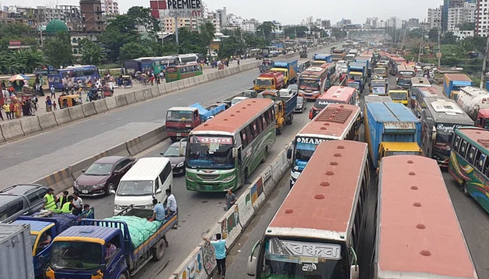 ঢাকা-চট্টগ্রাম ও ঢাকা-সিলেট মহাসড়কে ১৯ কিলোমিটার যানজট