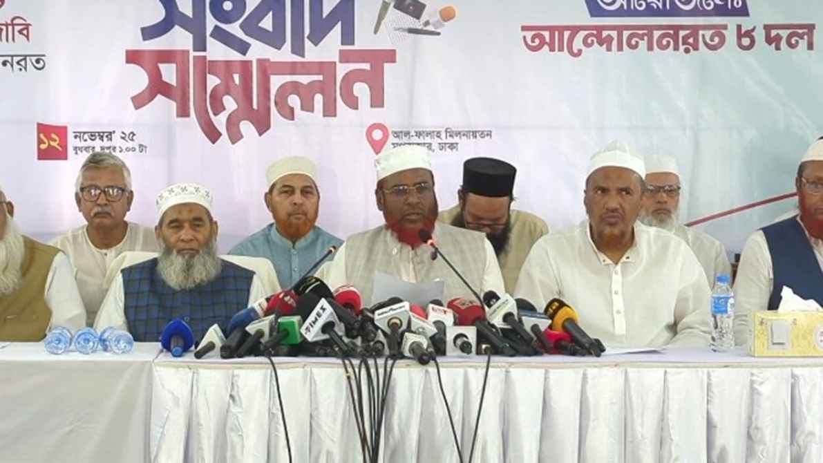 জামায়াতে ইসলামীসহ আটটি ইসলামি দল ১৬ নভেম্বরের মধ্যে ‘জুলাই সনদ’ বাস্তবায়নের আইনি ভিত্তিসহ পাঁচ দফা দাবি না মানা হলে প্রধান