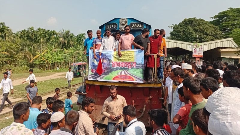 যাত্রাবিরতির দাবিতে আন্তঃনগর ট্রেন থামিয়ে বিক্ষোভ