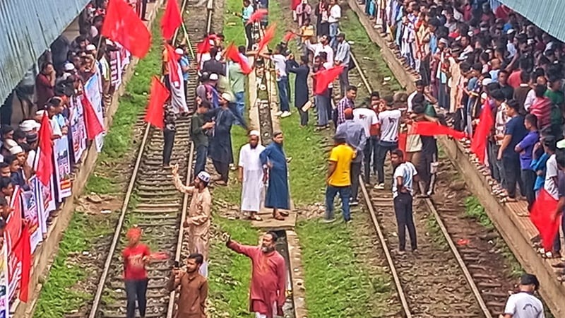 আট দাবিতে মৌলভীবাজারে রেলপথ অবরোধ