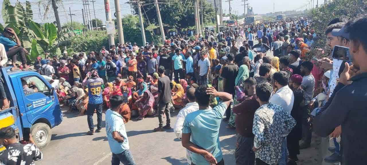 আশুলিয়ায় বকেয়া বেতন ও বন্ধ কারখানা চালুর দাবিতে বিক্ষোভ
