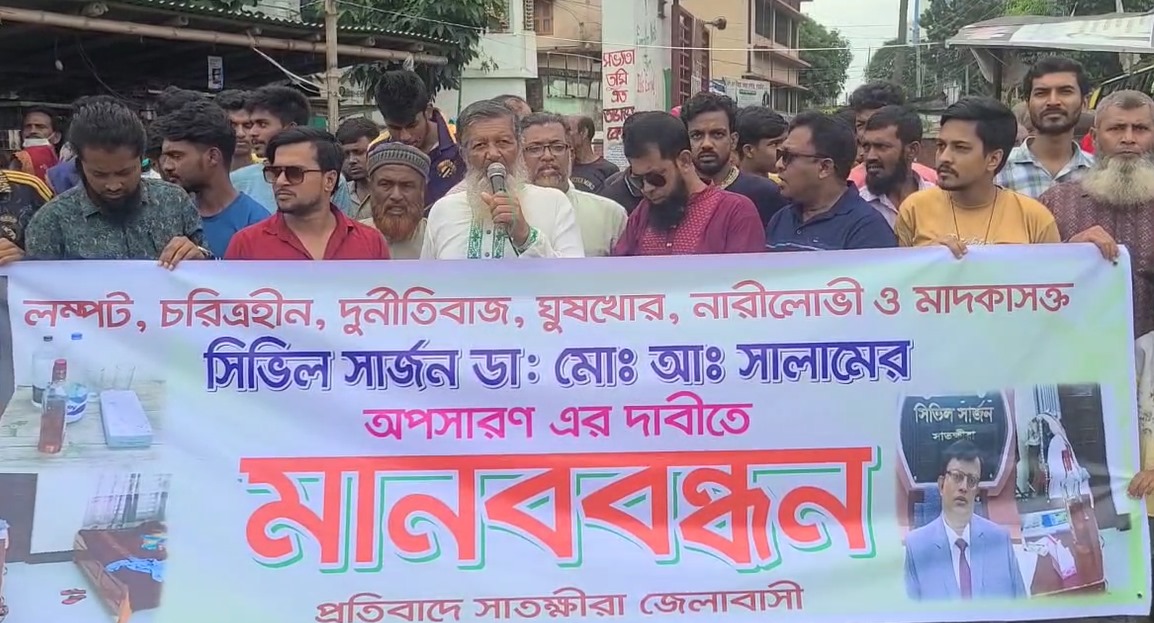 সাতক্ষীরার সিভিল সার্জন ডা. আব্দু সালামের অপসারণের দাবিতে বিক্ষোভ, মানববন্ধন ও সিভিল সার্জন অফিস ঘেরাও কর্মসূচি পালন করেছেন স্থানীয়রা। সোমবার