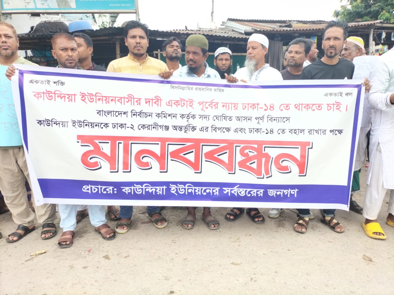 ঢাকা-১৪ আসনে থাকার দাবিতে কাউন্দিয়ায় মানববন্ধন
