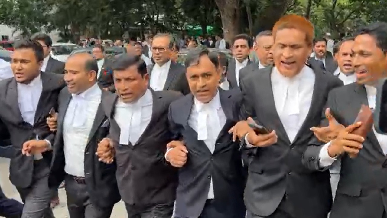 সাবেক প্রধান বিচারপতি এ বি এম খায়রুল হকের ফাঁসির দাবিতে বিক্ষোভ মিছিল করছেন আইনজীবীরা। মঙ্গলবার (১২ আগস্ট) দুপুর দেড়টার দিকে