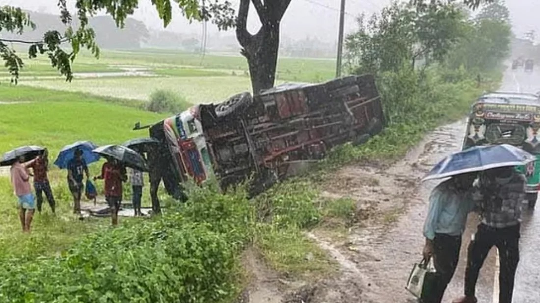 পাল্লা দিয়ে চলছিল দুটি বাস, একটির ধাক্কায় অন্যটি উল্টে আহত ২৮