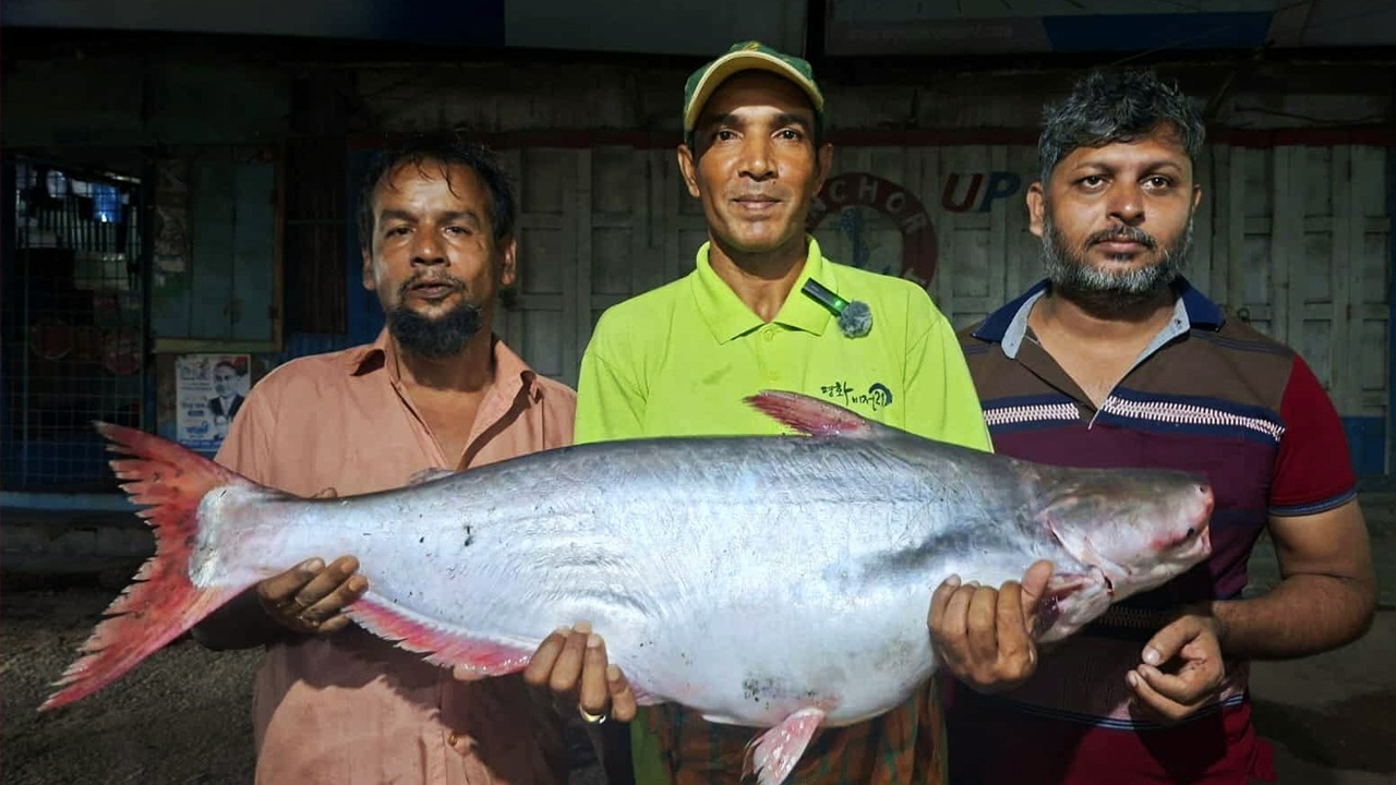বিষখালী নদীতে জেলের বড়শিতে ধরা ১৬ কেজির পাঙাশ