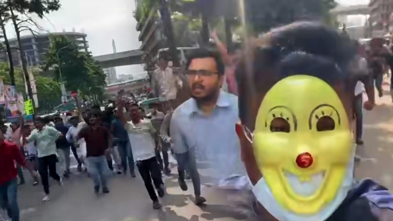 মুখোশ পরে কারওয়ানবাজারে ছাত্রলীগের ঝটিকা মিছিল