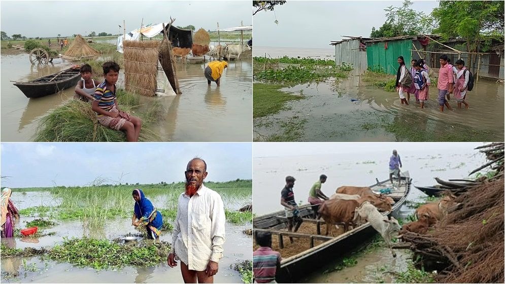 পদ্মা নদীর পানি বিপৎসীমার কাছাকাছি প্রবাহিত হচ্ছে। এর ফলে চরগুলো ডুবতে শুরু করেছে। চরবাসী গবাদি পশু ও মালপত্র নিয়ে লোকালয়ে