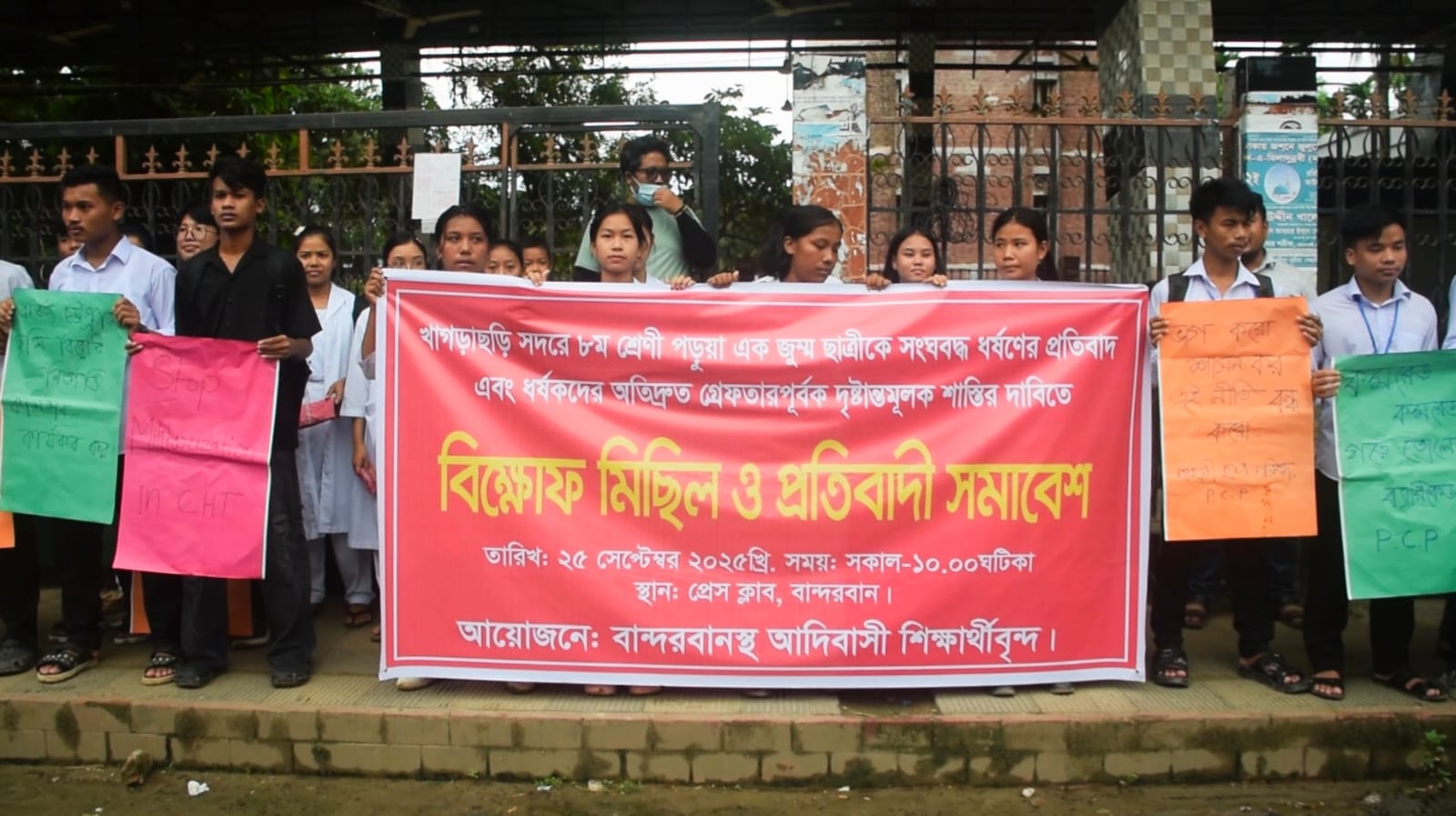 বান্দরবানে সাম্প্রতিক সময়ে ধর্ষণের ঘটনাগুলোর সুষ্ঠু বিচার ও ধর্ষকদের সর্বোচ্চ শাস্তির দাবিতে মানববন্ধন করেছে পার্বত্য চট্টগ্রাম ছাত্র পরিষদের। সোমবার (২৭