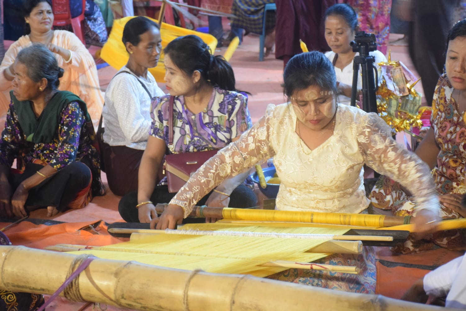 রাতের নিস্তব্ধতায় বাজে তাঁতের সুর। প্রদীপের মৃদু আলোয় ব্যস্ত হাতে ঘুরছে চাকার মতো সূতা। বৌদ্ধ নারীরা বুনে চলেছেন চীবর যা