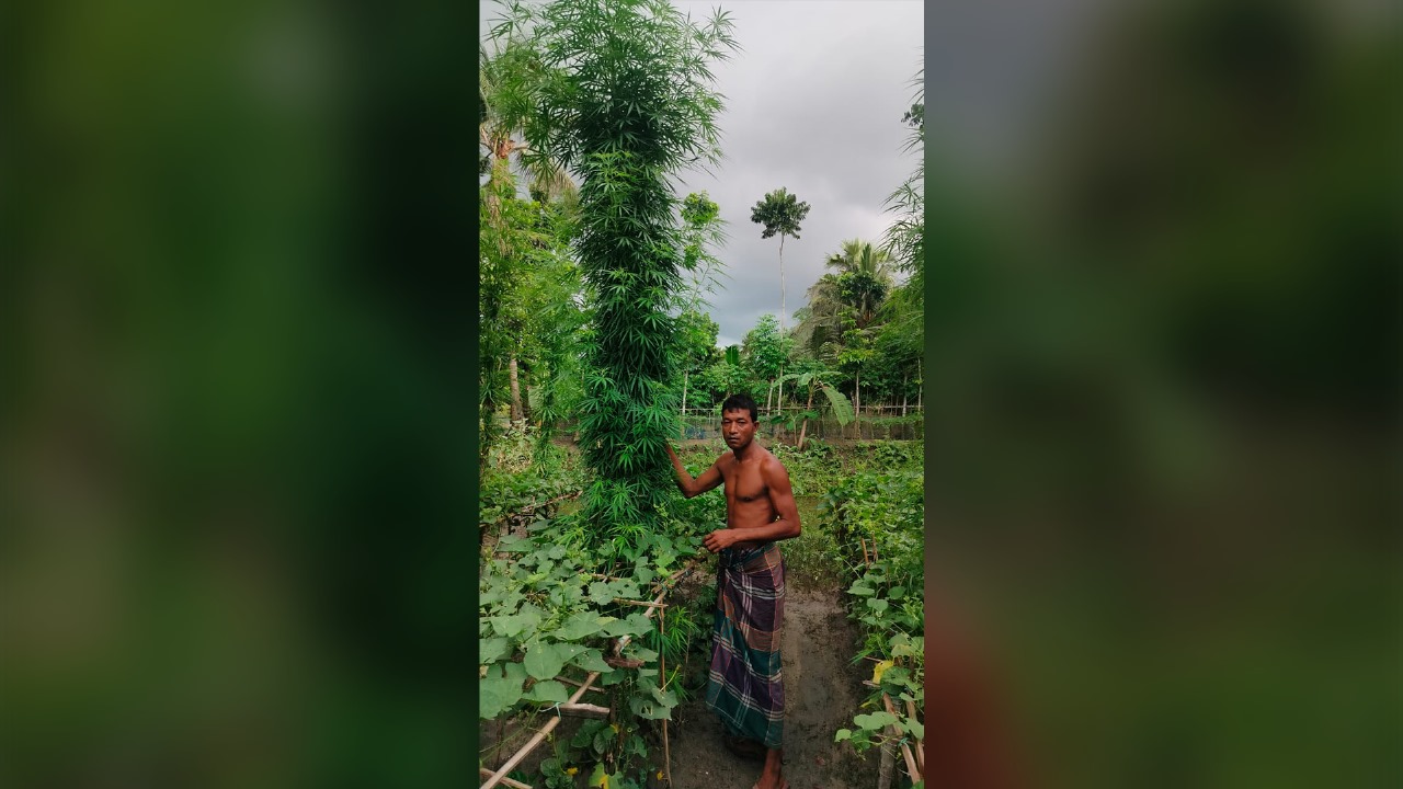 কাকুর (শসাাজাতীয়) ও পটলের সঙ্গে একাকার হয়ে থাকা গাঁজার গাছগুলো এড়িয়ে যেতে পারেনি পুলিশের চোখ। শেষ পর্যন্ত ধরা পড়লো চাষি