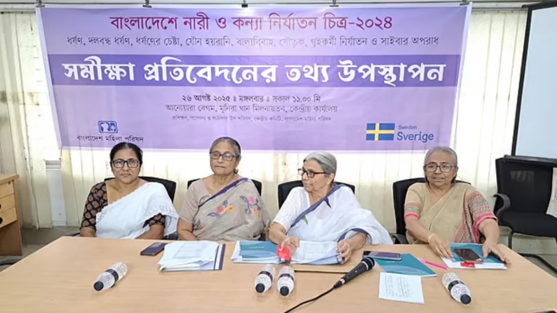 বাংলাদেশে নারী ও কন্যা নির্যাতন: ২০২৪ সমীক্ষা’ প্রতিবেদন প্রকাশ করেছে বাংলাদেশ মহিলা পরিষদ। দেশজুড়ে ধর্ষণের ঘটনা প্রথম ছয় মাসেই গত