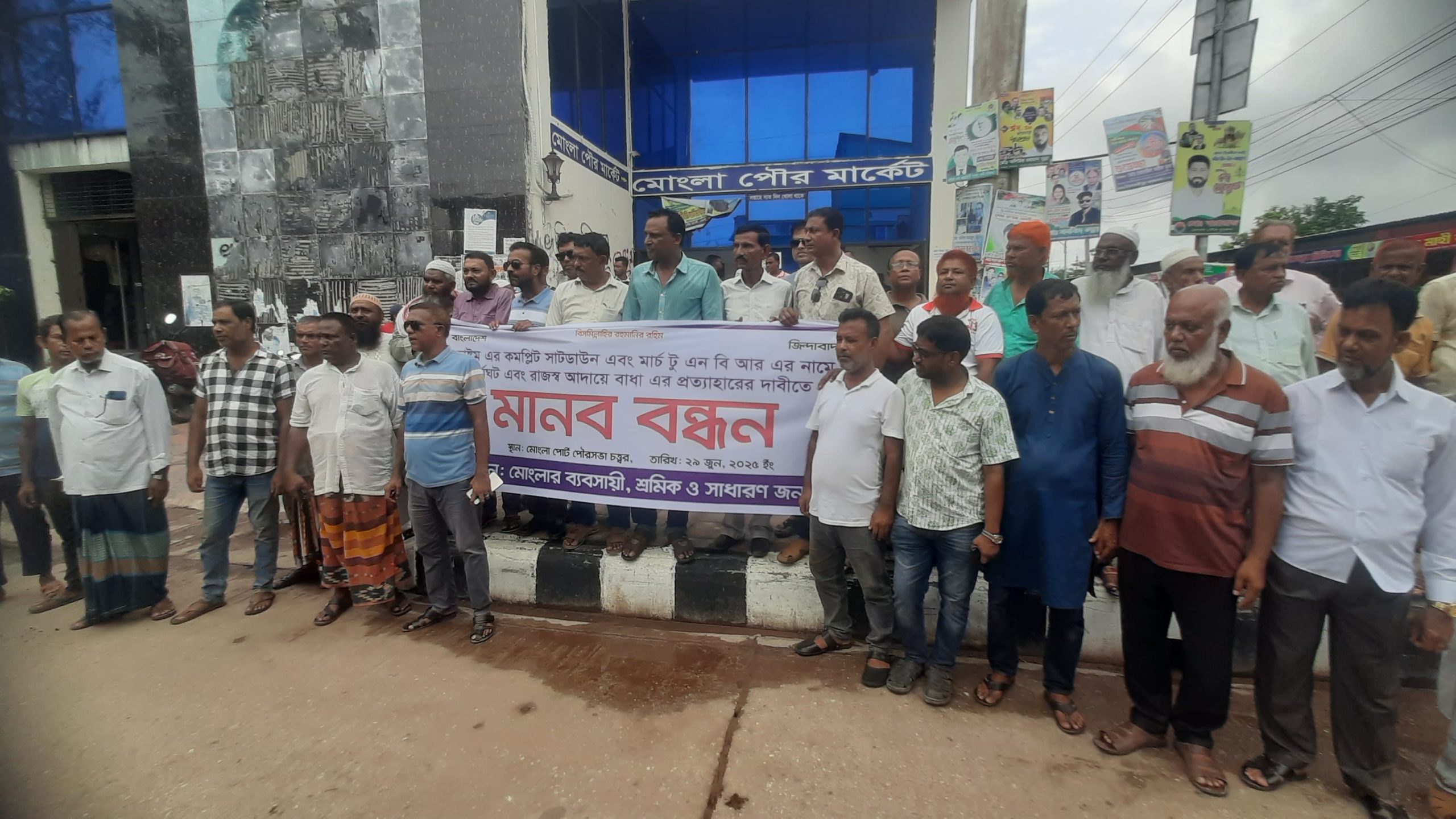 মোংলায় কাস্টমস শাটডাউনের প্রতিবাদে ব্যবসায়ী-শ্রমিকদের মানববন্ধন