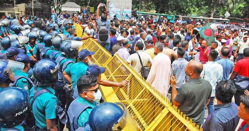 শিক্ষকদের শাহবাগ অবরোধ, যান চলাচল বন্ধ
