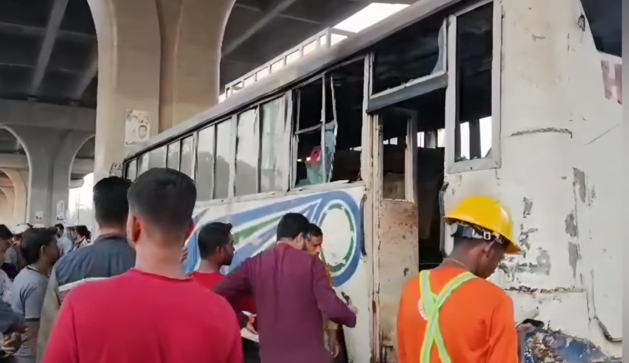 আশুলিয়ায় শ্রমিক পরিবহনকারী বাসে আগুন