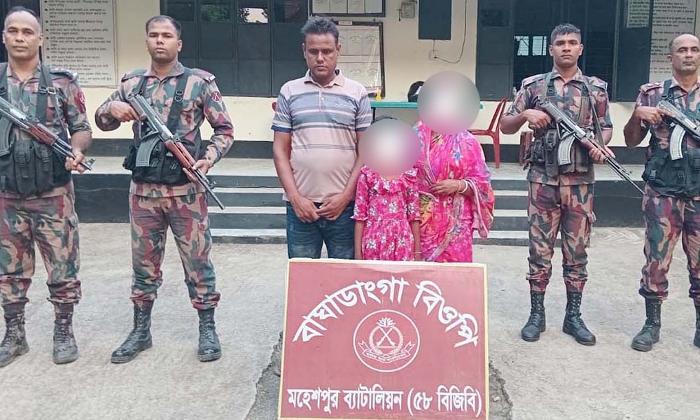 ঝিনাইদহের মহেশপুর উপজেলার বাঘাডাঙ্গা সীমান্ত দিয়ে অবৈধভাবে ভারতে প্রবেশের চেষ্টা করার সময় নারী, পুরুষ ও শিশুসহ তিনজন বাংলাদেশি নাগরিককে আটক
