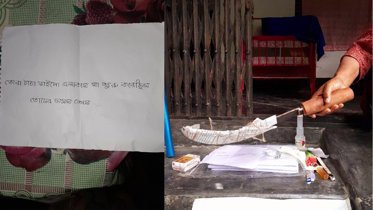 যশোরের মনিরামপুর উপজেলার ইত্যা গ্রামে বিএনপি ও যুবদল নেতার বাড়িতে কাফনের কাপড়, দা, চিরকুট, গোলাপজলসহ দাফনের বিভিন্ন সামগ্রী রেখে গেছে