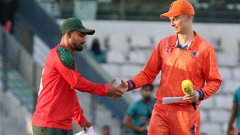 সিলেট আন্তর্জাতিক স্টেডিয়ামে নেদারল্যান্ডসের বিপক্ষে সিরিজের শেষ ম্যাচে টস হেরে প্রথমে ব্যাটিং করতে নেমেছে বাংলাদেশ। আগের দুই ম্যাচে টস জিতে