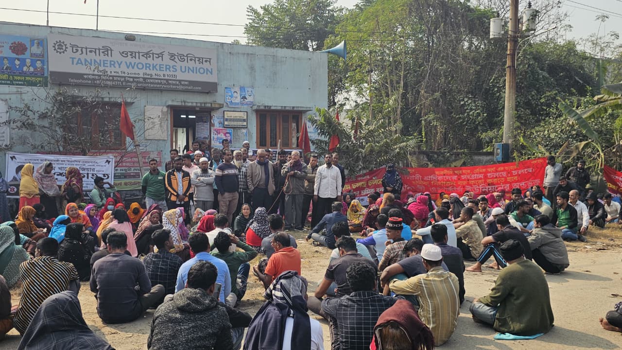 নির্ধারিত মজুরি বাস্তবায়নের দাবিতে ট্যানারি শ্রমিকদের বিক্ষোভ
